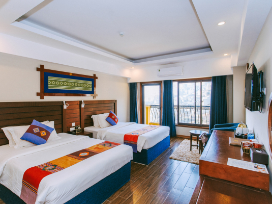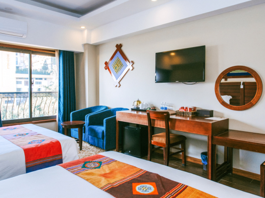 In addition to modern facilities and furnishings, each Deluxe Room possesses a romantic private balcony overlooking the marvelous landscape of high mountains and terrace valleys.